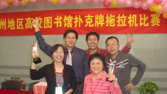 11月15日,我校图书馆教工扑克牌拖拉机兴趣小组参加了在广东工业大学大学城校区图书馆举行的广州地区高校图书馆“读秀杯”扑克牌拖拉机比赛。我校教工以“牌”会友,与各高校众多高手切磋牌艺。在比赛中充分发扬团队协作精神,取得了五胜四平三负的良好成绩。