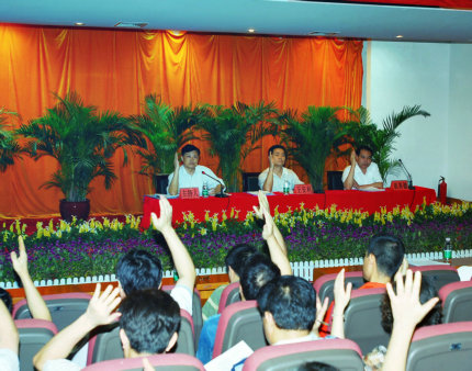 6月26日,我校第四届教代会在报告厅举行特别会议,学校党委书记王安利、校长崔英德、副校长向梅梅、瞿志印以及全体教代会代表参加,学校党委副书记、工会主席高岳仑主持。各院、系、部等单位不属于教代会代表的党、政主要负责人列席。