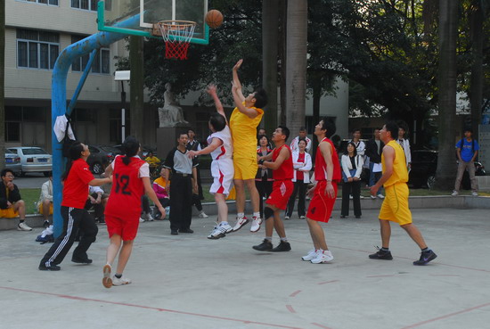 今年教工篮球赛的组队及竞赛形式与往年有所不同。由于11月后各教学单位将进驻新校区并开始在新校区担负繁重的教学任务,为了既不影响各单位在进驻新校区前的准备工作,又照顾广大教职工特别是篮球爱好者参与运动的积极性,工会根据我校教工篮球运动的总体状况,采取简缩赛程、变更形式的方法,由上年教工篮球赛前三名(非体育)即信息学院、生命科学学院、保卫总务人事联队分别负责牵头,联合其他部门组成三支非体育专业的联队进行循环赛。而后再从这三队中抽选运动员组成(非体育)教工联队与体育部教工队进行比赛。