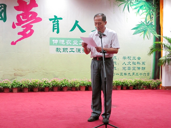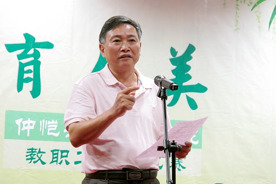 比赛结束后,副校长、工会主席瞿志印发表了热情洋溢的讲话,他代表学校党政对这次演讲比赛活动表示了充分的肯定和赞许,他说,这次活动之所以取得圆满成功,有赖于各级领导的高度重视、大力支持和广大教职工的热情参与。他说,老师们激情澎湃的演讲,彰显着奋发精神和巨大能量,这正是广大教职工发扬光荣传统,努力开拓创新的当代仲恺人的精神和力量。只要大家继续弘扬仲恺精神,凝聚智慧和力量,就一定能够大力推动学校更好更快地发展。他代表学校工会向支持工会工作,积极参与这次活动的各级党政、部门工会以及广大教职工表示感谢,对选手们的出色表现和取得优异成绩表示祝贺,并希望大家再接再厉,以自己教书育人的创造性劳动托起仲恺梦和中国梦。