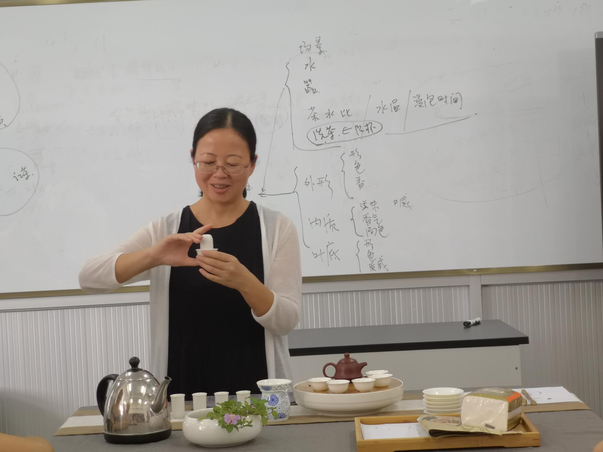 会后进行的茶文化交流体验活动上,园艺园林学院胡秀副教授为大家带来了一场茶艺的盛宴。胡老师详细讲解了茶文化的历史渊源,茶的六大分类,泡茶注意事项,审评与品饮的影响因素、环境要求、特点特征等。她现场传授沏茶技巧,从温杯开始直至品茶的整个过程。委员们边听边看,自发分成六组,亲自体验沏茶过程,茶香萦绕,满室芬芳,在茶香中品味茶的美好,在茶韵中感悟茶的魅力。