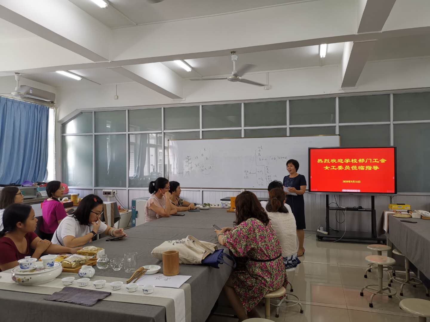 9月16日下午,新一届部门女工委员工作会议暨茶文化交流体验活动在白云校区实验楼B404室顺利举行。活动由校女教职工委员会组织,来自学校及部门的二十多名女工委员参加了本次活动。