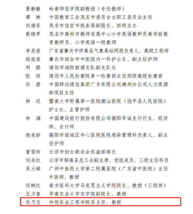 我校教师肖乃玉获评“广东省先进女职工”荣誉称号